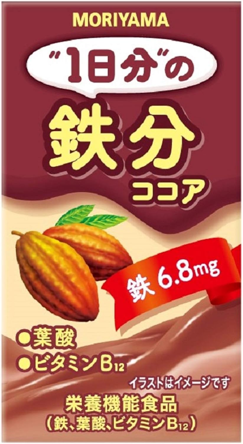 1本で1日分の鉄分(6.8mg)、葉酸、ビタミンB12を摂取できます。鉄分特有の味が苦手でも、普通のココアと同じようにおいしく飲めるので、間食にもおすすめです。