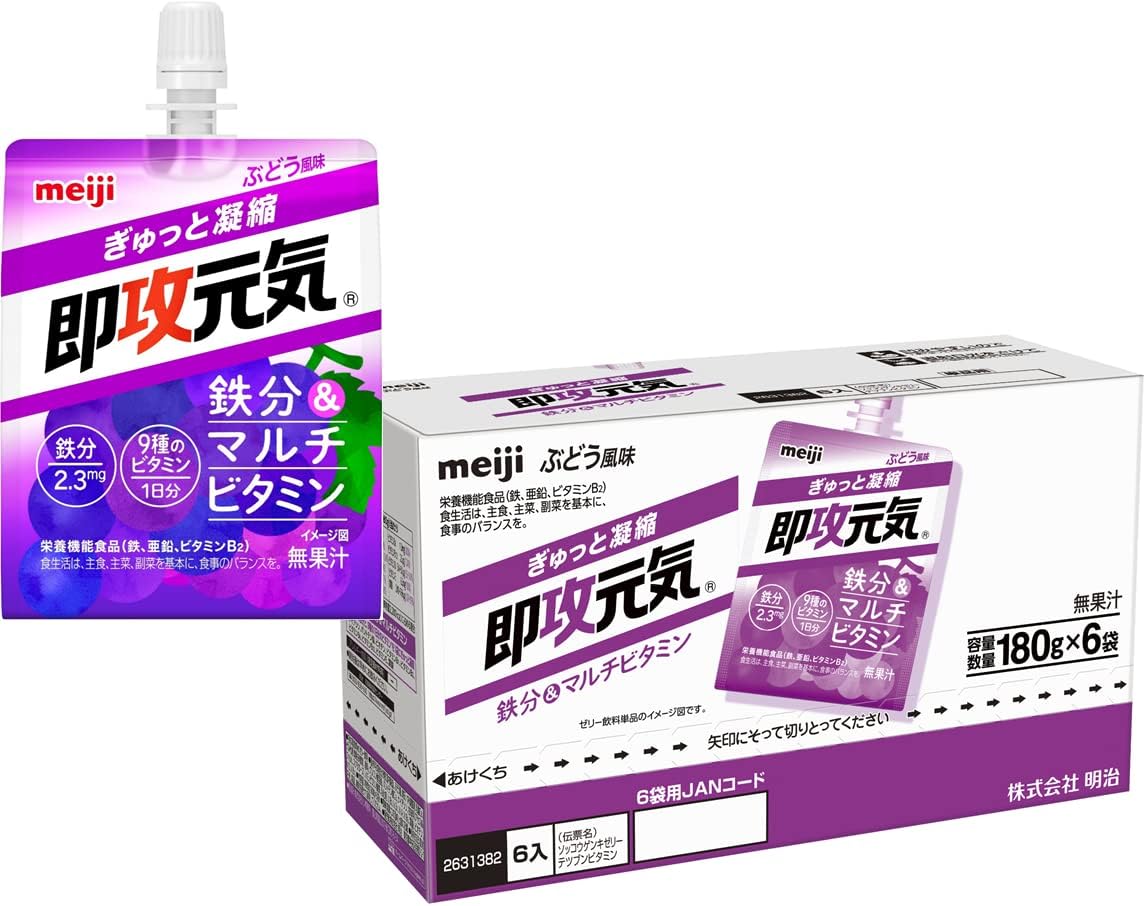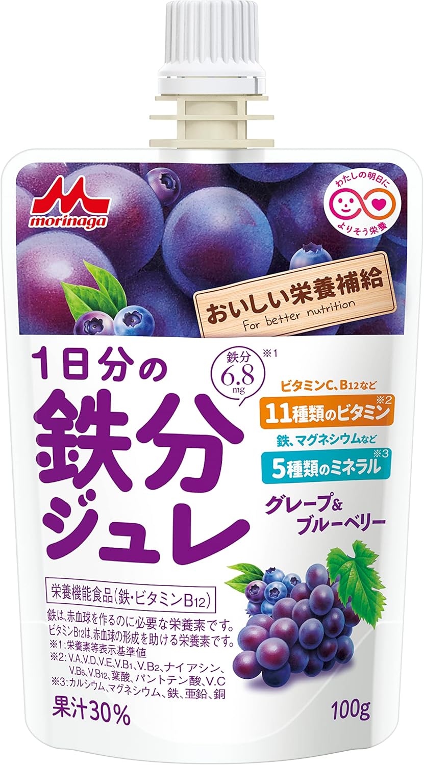 1本で1日分の鉄分(6.8mg)を補え、亜鉛や11種のビタミンなども同時に摂ることができます。「グレープ&ブルーベリー」と「アップル&キャロット」の2種類から選べます。